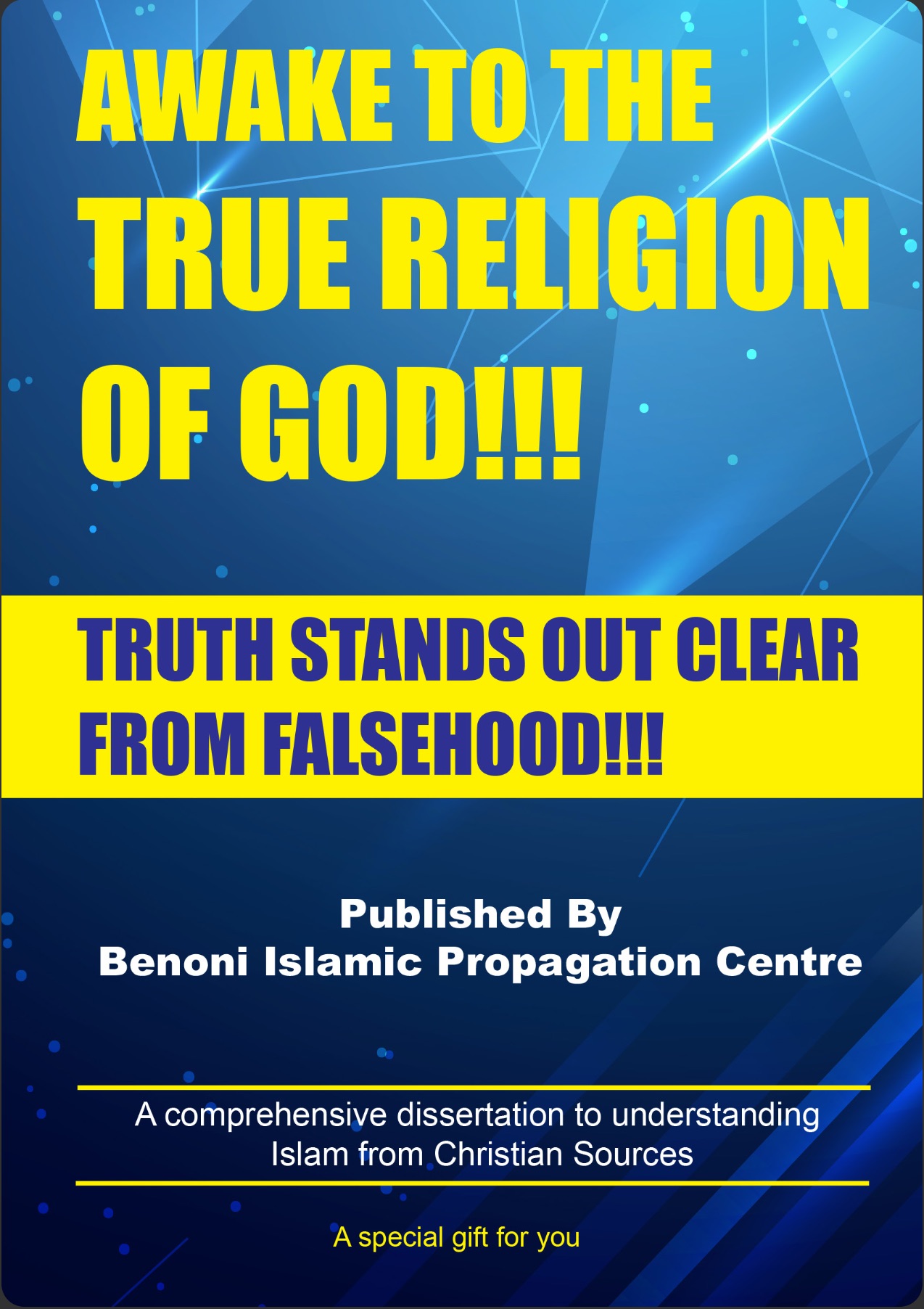 Benoni Islamic Propagation Centre has compiled and published a booklet titled “Awake to the True Religion of God” proving without a shadow of a doubt that Islam is the One True Religion of God.