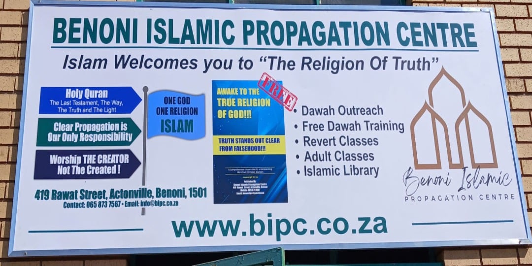 The Benoni Islamic Propagation Centre was established to be a means of comprehensive Islamic education and information dissemination through outreach within and outside the Muslim community